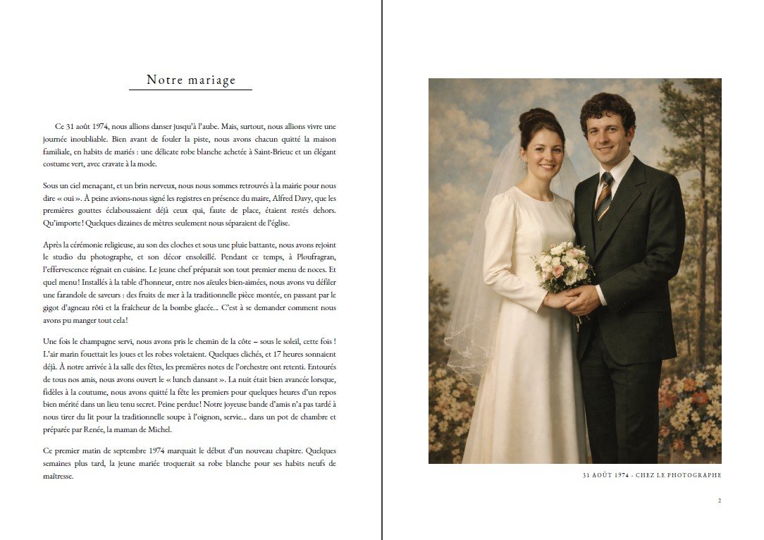 L’impression de votre beau livre fait l’objet d’un devis distinct pour répondre au mieux à vos envies (type de papier, couverture…).